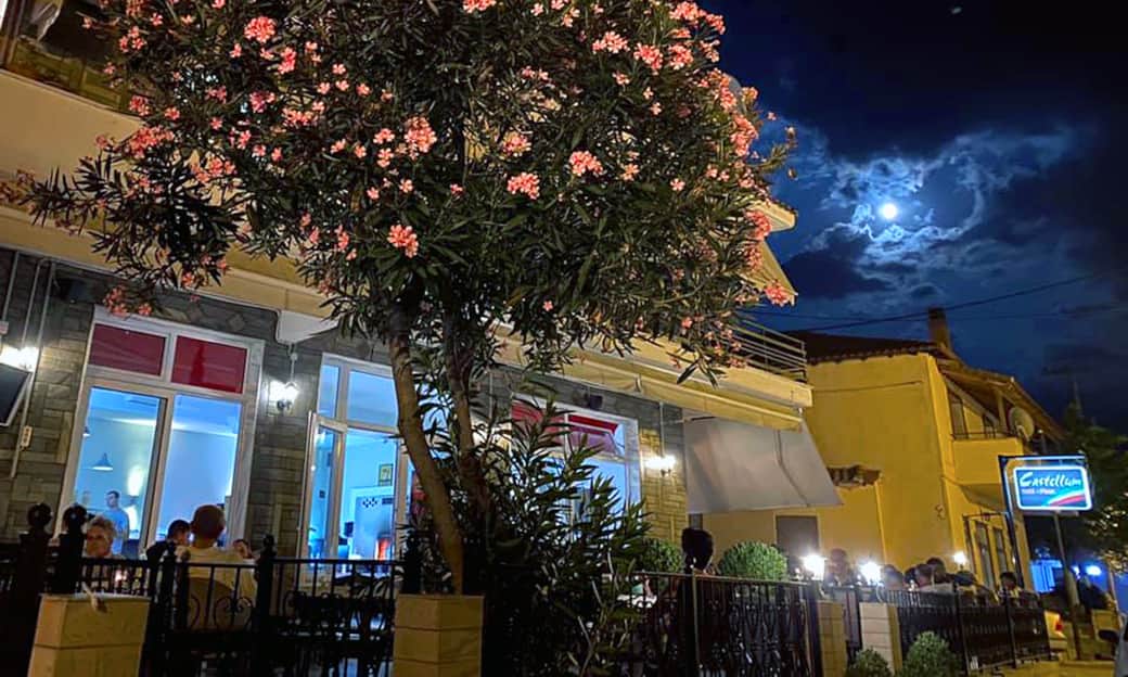 Geleneksel Avdira köyünde bulunan "Castellum" Pizzeria, geniş terası ve masa düzeniyle aileler ve gruplar için ideal, güzel ve konforlu bir mekanda eksiksiz bir gastronomi deneyimi sunmaktadır.