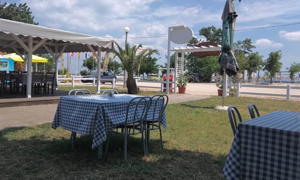 Mekan, Mandra plajı ve plaj barının güzel bir manzarasına sahip olup, bölgede kaldığınız süre boyunca öğle veya akşam yemekleri için ideal, rahat ve davetkar bir ortam yaratmaktadır.